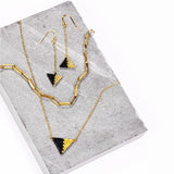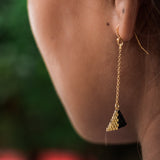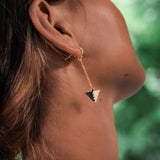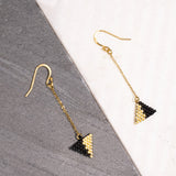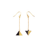 The Be Light Beaded Earrings are designed to highlight one of our core beliefs that the tiniest pinprick of light permeates even the darkest places of the world. They are hand-beaded using stunning 18K gold-plated stainless steel and black glass beads. The triangular pendants are 0.5" wide and hang on 1" 18K gold-plated stainless steel chains. The hooks are 18K gold-plated sterling silver.