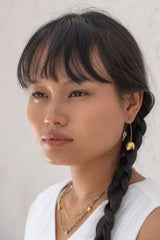 Inspired by our microgreens program, this seed-shaped minimalist threader earring comes in natural stainless steel or with an 18K gold-plated finish. 2” by 1.15”.