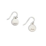 Eden's Love and Justice Drop Earrings feature asymmetrical pendants engraved with 'Love' and 'Justice' which serve as a reminder of the power of these two qualities. The pendants are 0.4" in diameter and hang 1.5". Available in natural and 18K gold-plated stainless steel. The hooks are natural or 18K gold-plated sterling silver.