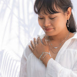 Sterling silver jewellery is marked with a 925 stamp. Polish sterling silver pieces with a jewelry polishing cloth. If more attention is needed, immerse in a solution of warm water and mild dishwashing liquid and gently hand wash. A soft toothbrush can also be used for more abrasive cleaning when needed. Thoroughly rinse and completely dry the silver before storing, as moisture contributes to tarnishing. Never clean your jewelry in bleach. If the jewelry contains gemstones or pearls, do not submerge the entire piece into the water. Instead, use a cotton swab with mild dishwashing liquid to wash only the silver.