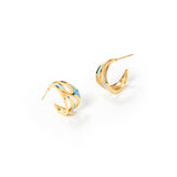 The Walk in Faith Mini Hoop Earrings encourage the wearer to step out in faith and take action to change your story and those of trafficking survivors like Su Su. The 0.6" diameter huggie with blue and turquoise colored enamel are made of 18K-plated stainless steel on 316 medical-grade 18K gold-plated stainless steel posts.