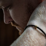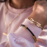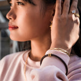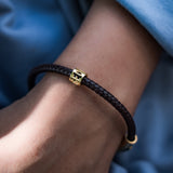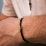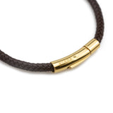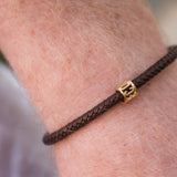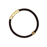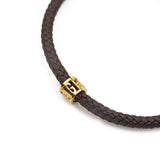 棕色編織真皮錶帶,搭配18K鍍金不銹鋼「勇氣」吊墜。有 7.5 英吋或 8.5 英吋可供選擇。 #C228GA,#C228GB。